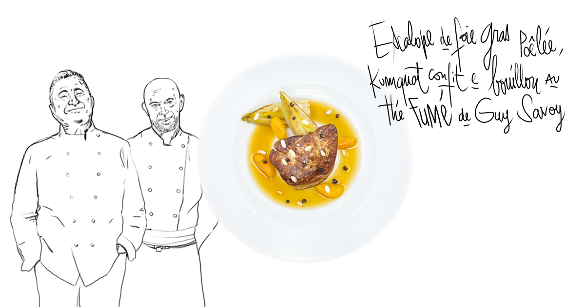 Au menu ? "Escalope de foie gras poêlée, kumquats confits & bouillon au thé fumé"